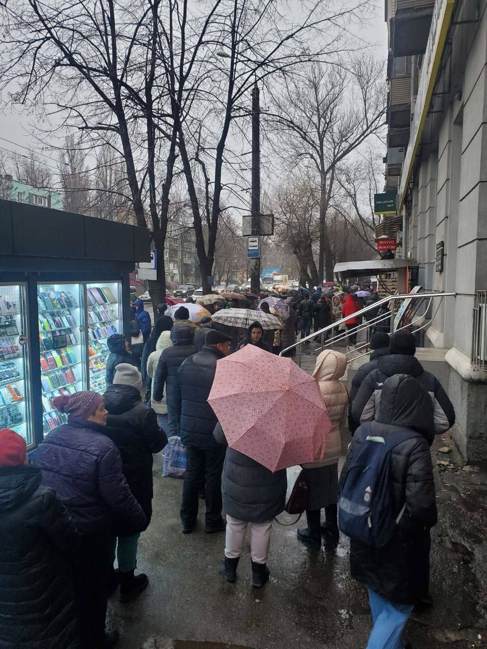 Через проблеми із транспортом на зупинках утворилися кілометрові черги. Люди по декілька годин чекали на маршрутки. Багато хто так і не зміг поїхати по справам.