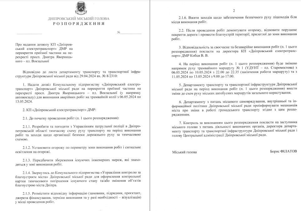 Причина - ремонт трамвайних колій. Про це йдеться в проєкті розпорядження, оприлюдненому на сайті Дніпровської міської ради.