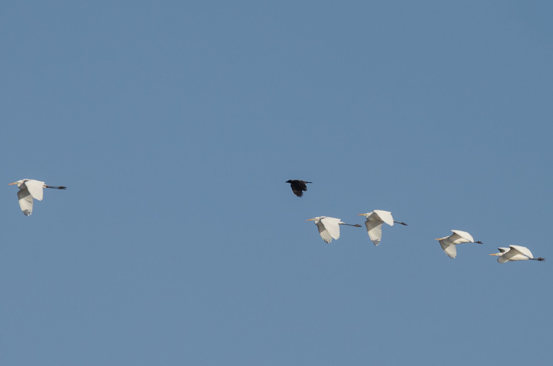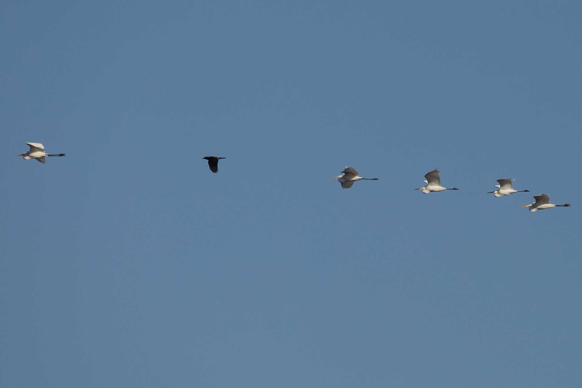 У Дніпрі чорна ворона очолила зграю білих чапель: фотограф зазняв дивний союз на камеру
