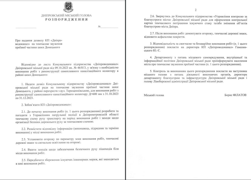 Зазначається, що роботи буде проводити КП "Дніпроводоканал" з 31 жовтня до 31 грудня.
