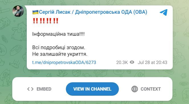 Не виключено, що будуть повторні атаки, тож залишайтеся в укриттях.