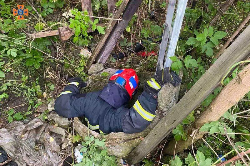 ДСНС-ники за допомогою драбини та рятувальної мотузки дістали тварину з пастки. З песиком все добре.