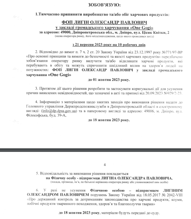 Заклад тимчасово закрили - з 21 вересня на 10 робочих днів - для усунення усіх порушень. Якщо власник закладу цього не зробить, матеріали будуть передані до суду.