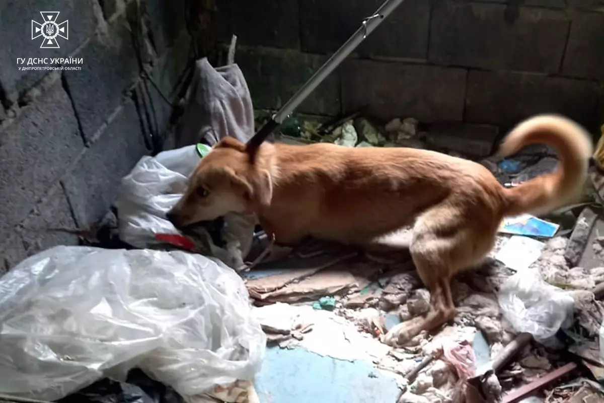 У Дніпрі двоє собак впали у занедбаний 3-метровий погріб: їх діставали рятувальники
