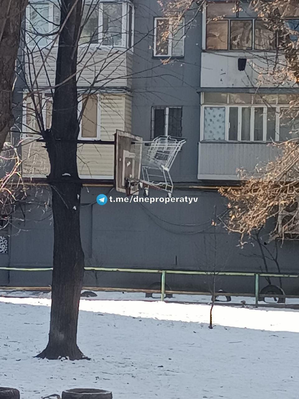 На проспекті Гагаріна в Дніпрі місцеві мешканці вигадали новий спосіб "гри" в баскетбол. Невідомі замість меча закинули в кільце продуктовий візок з супермаркету. Незвичною знахідкою поділилися місцеві мешканці в телеграм-каналі.