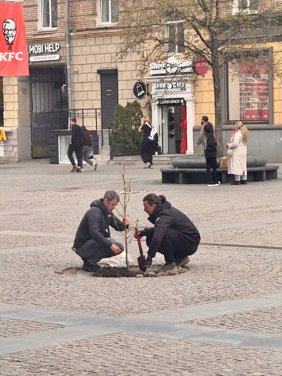 У Дніпрі хлопці самостійно висадили дерево на Європейській площі