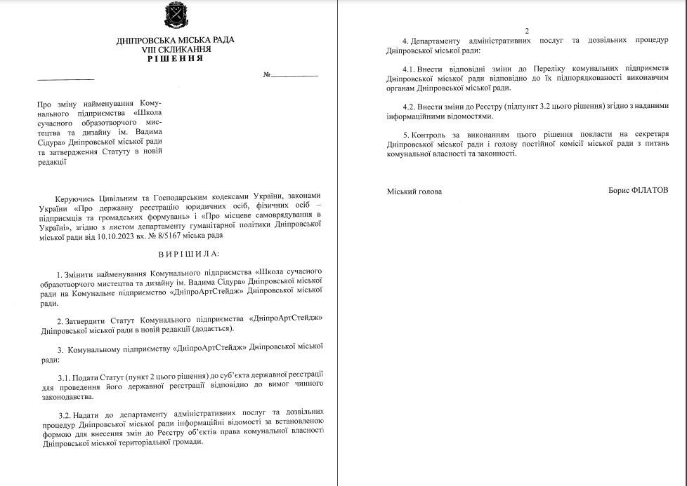 Якщо рішення підтримають, тоді заклад називатиметься Комунальне підприємство "ДніпроАртСтейдж". Згідно зі статутом, який має прийняти нове КП, тут продовжать проводити різноманітні івенти та надавати послуги у мистецькій галузі. Тож, по суті, окрім назви нічого не зміниться.