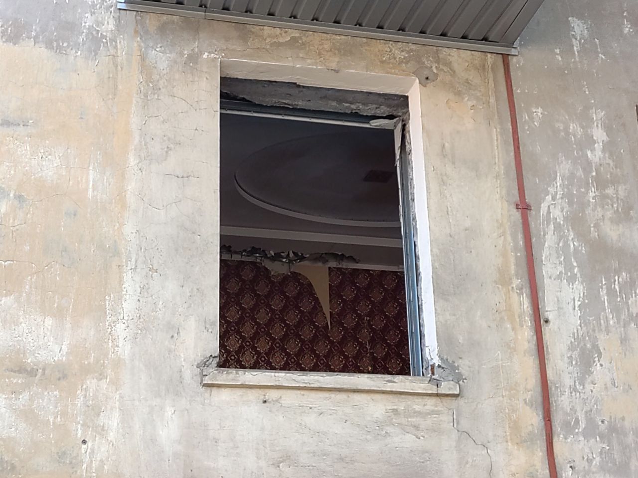 В одній із квартир на другому поверсі будинку можна побачити гарний ремонт – обшивку стелі та шпалери ще не встигли здерти зі стін.