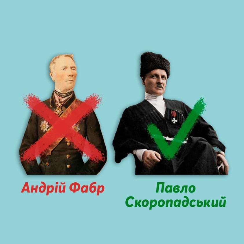 Сергій Тютюнник пропонує перейменувати вулицю Андрія Фабра, який був російським імперським чиновником. На думку громадського діяча, топонім варто назвати на честь Павла Скоропадського - гетьмана України, українського державного, політичного і громадського діяча, військовика. Про це очільник Просвіти повідомив на своїй Facebook-сторінці.