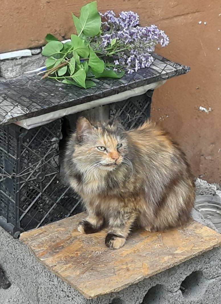 За словами містянки, кішка живе у підвалі однієї з багатоповерхівок. Наразі Світлана намагається знайти для бідосі нових господарів. Поки що тривають пошуки, тому чотирилапу оселили в підвалі.