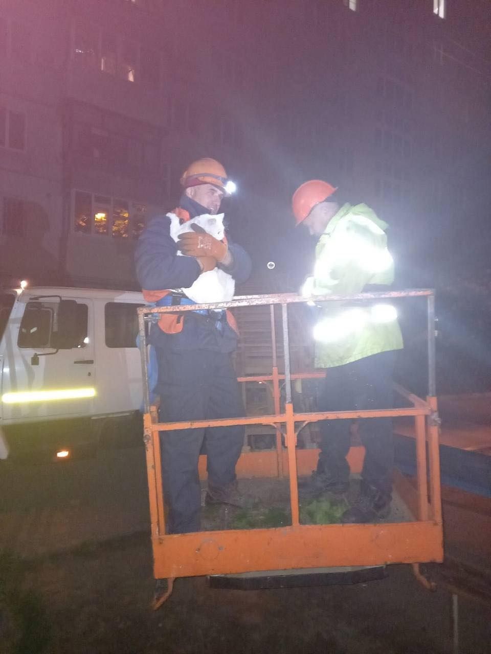 На допомогу бідосі прийшли комунальники. Співробітники КП "Дніпровський електротранспорт" оперативно відреагували та направили до місця події 17-метрову вежу.