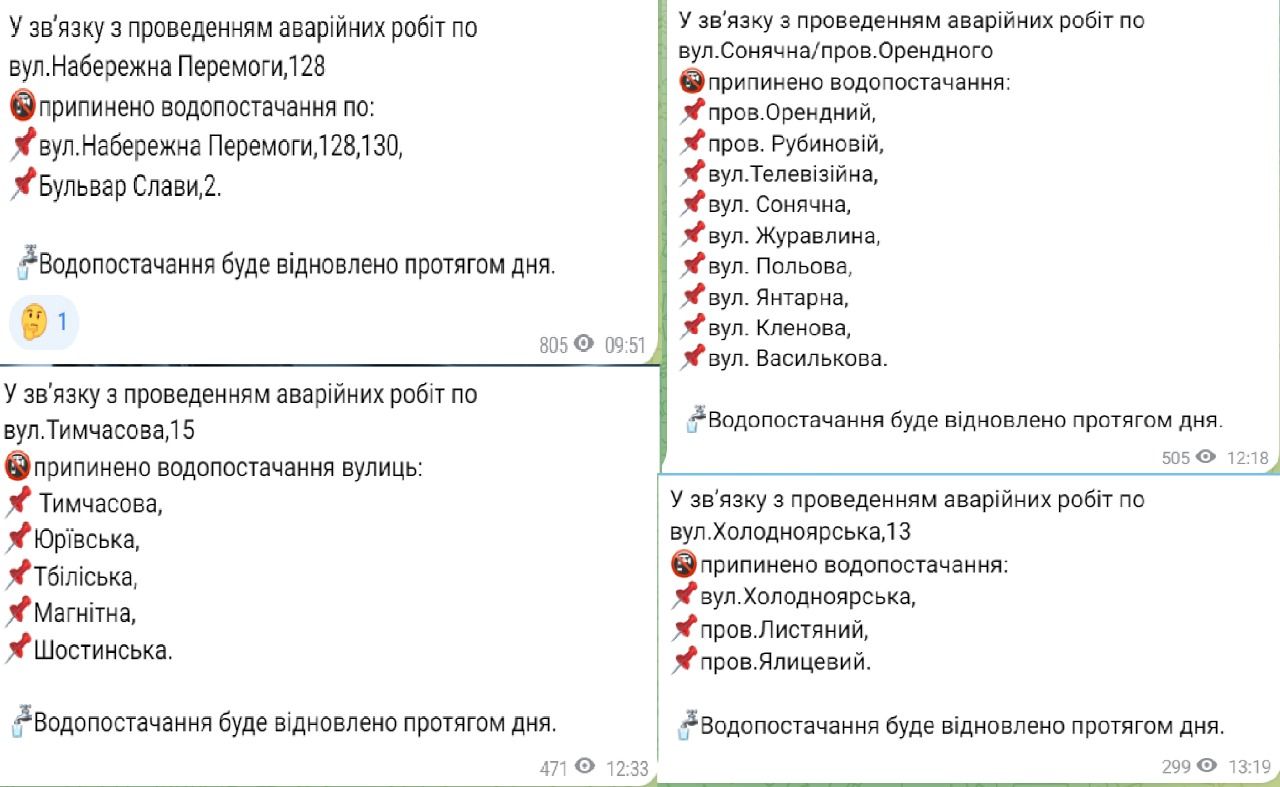 Водопостачання обіцяють відновити протягом дня.