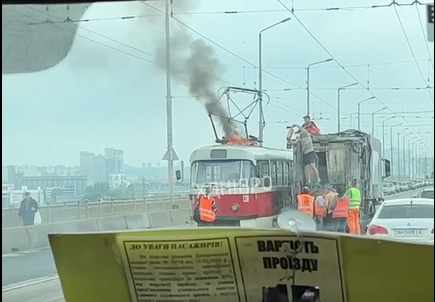 Сьогодні, 23 травня, у Дніпрі на Амурському мосту загорівся трамвай.