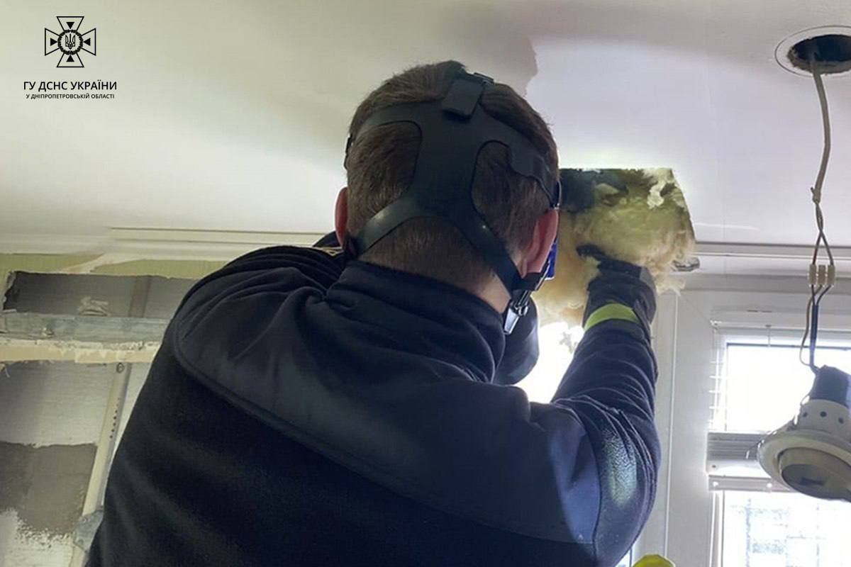 Приїхавши на місце, надзвичайники з'ясували, що господар квартири заздалегідь викликав будівельну бригаду, яка демонтувала підвісну стелю та гіпсокартонні стіни лоджії.