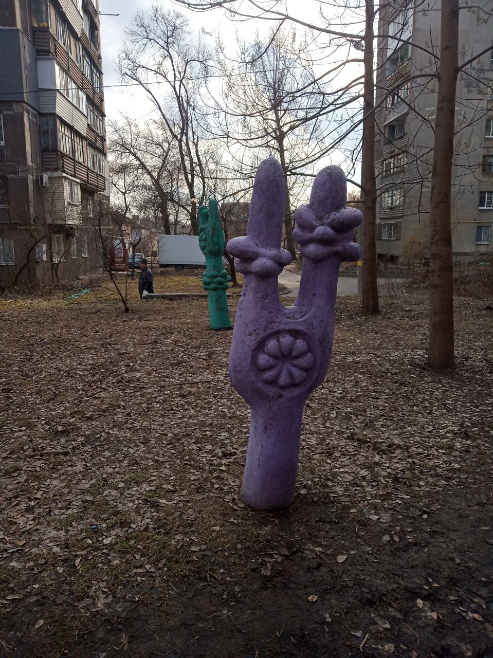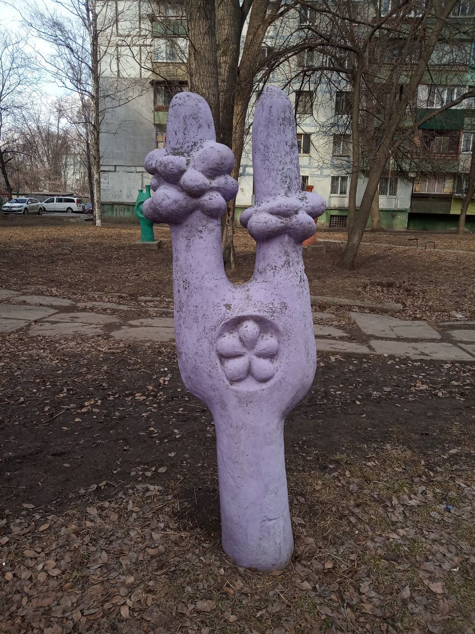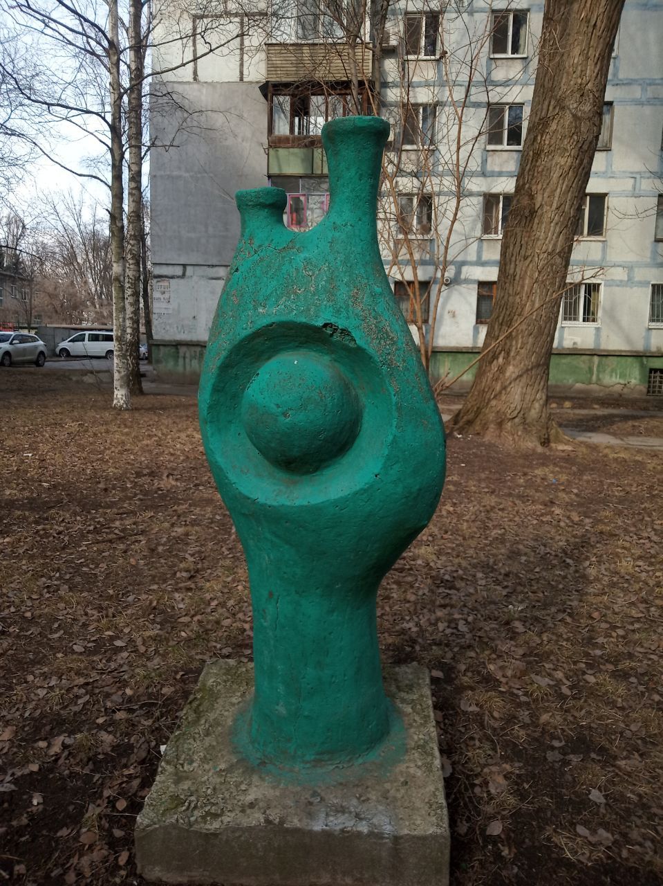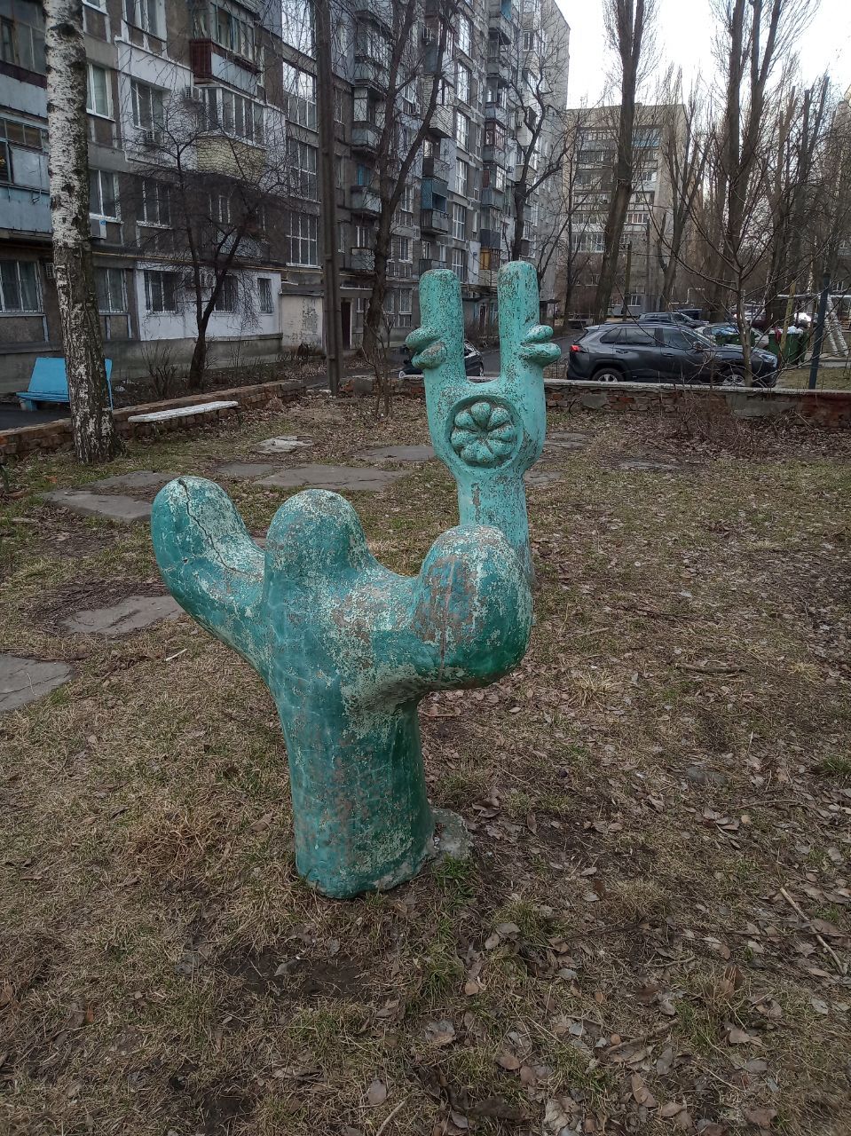 В одному із дворів багатоповерхового будинку на вулиці Будівельників у Дніпрі стоять незвичайні скульптури із каменю.