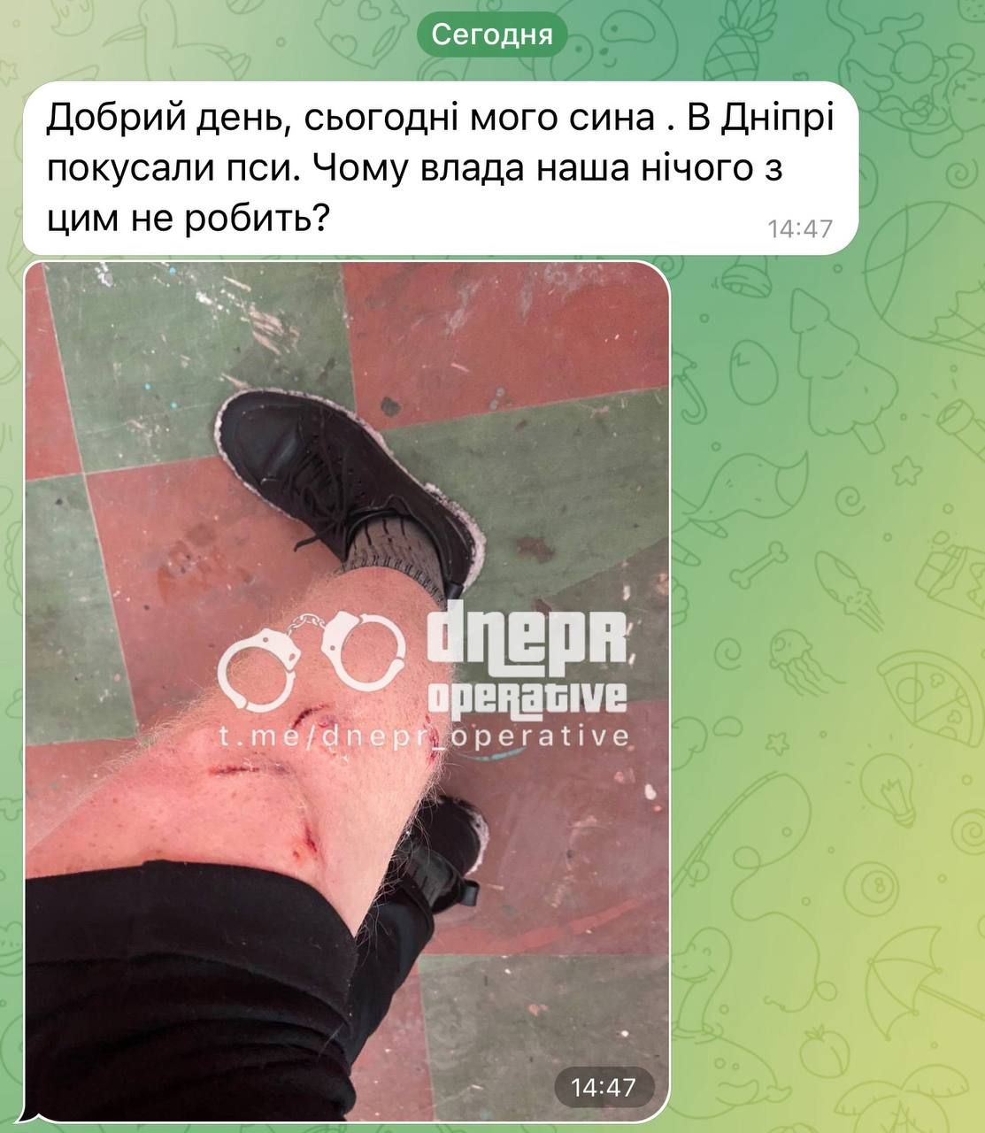 Сьогодні подібний інцидент стався на вулиці Калиновій, на ринку. Безпритульні собаки напали на підлітка та сильно покусали його за ногу.