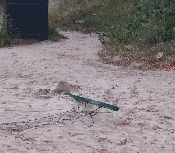 На лівому березі, біля озера Котлован, невідомі понівечили майданчик для пляжного волейболу. Місцеві прозвали їх "рептилоїдами".