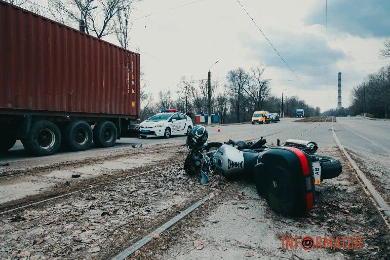 У Дніпрі на Кротова мотоцикліст врізався у фуру: що з водієм двоколісного