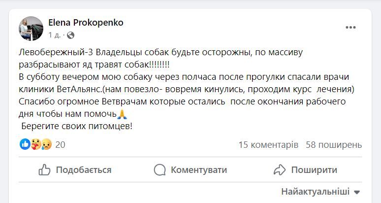 Жінка попереджає інших власників собак про небезпеку. Отруту розкидали по всьому Лівобережному-3.