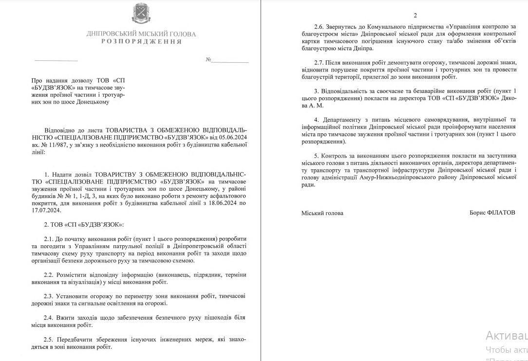 У Дніпрі планують звузити проїзну частину та тротуар по Донецькому шосе, а саме біля будинків №1, №1Д, 3. У цьому районі запланували будівництво кабельної лінії, йдеться у проєкті розпорядження оприлюдненому на сайті Дніпровської міської ради.