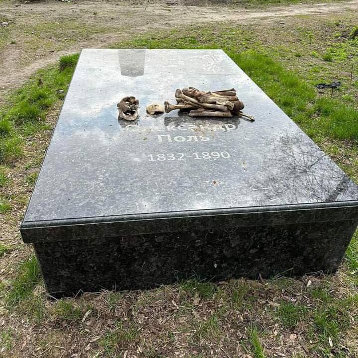 Сьогодні, 8 квітня, вранці у Севастопольському парку в Дніпрі на могильній плиті Олександра Поля знайшли кістки.