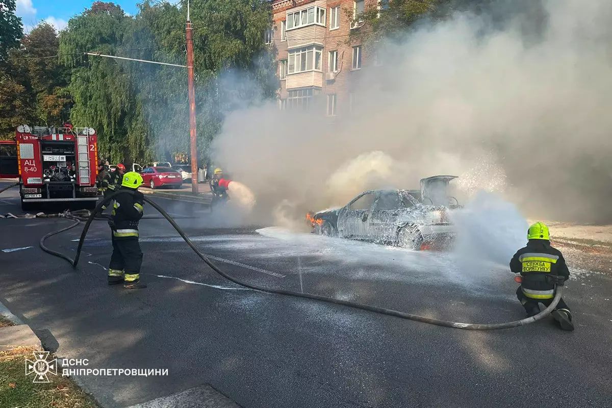 Сьогодні, 10 вересня, у Центральному районі Дніпра на Олександра Поля посеред дороги під час руху загорілося легкове авто OpelVectra. Відео та фото з місця розповсюдили очевидці у місцевих Telegram-каналах.