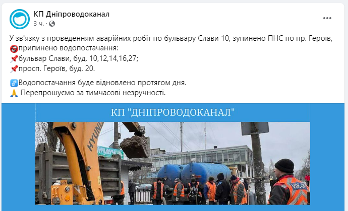 У Дніпрі на Перемозі деяким мешканцям відключили воду: коли відновлять водопостачання