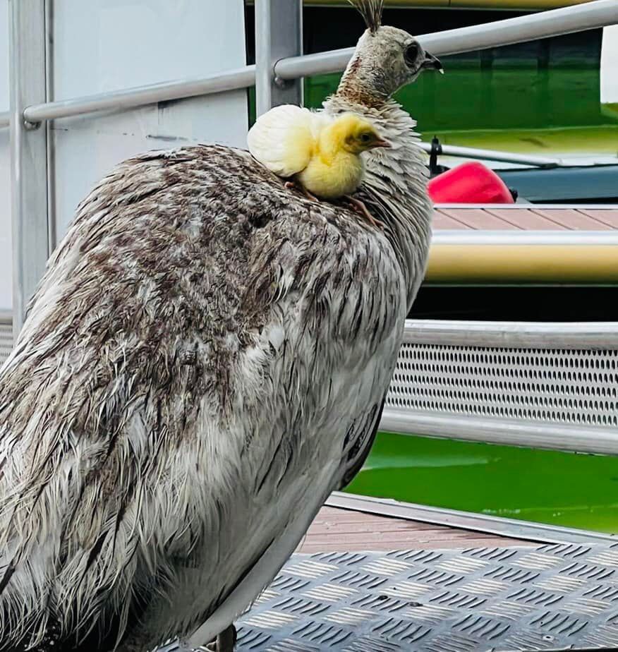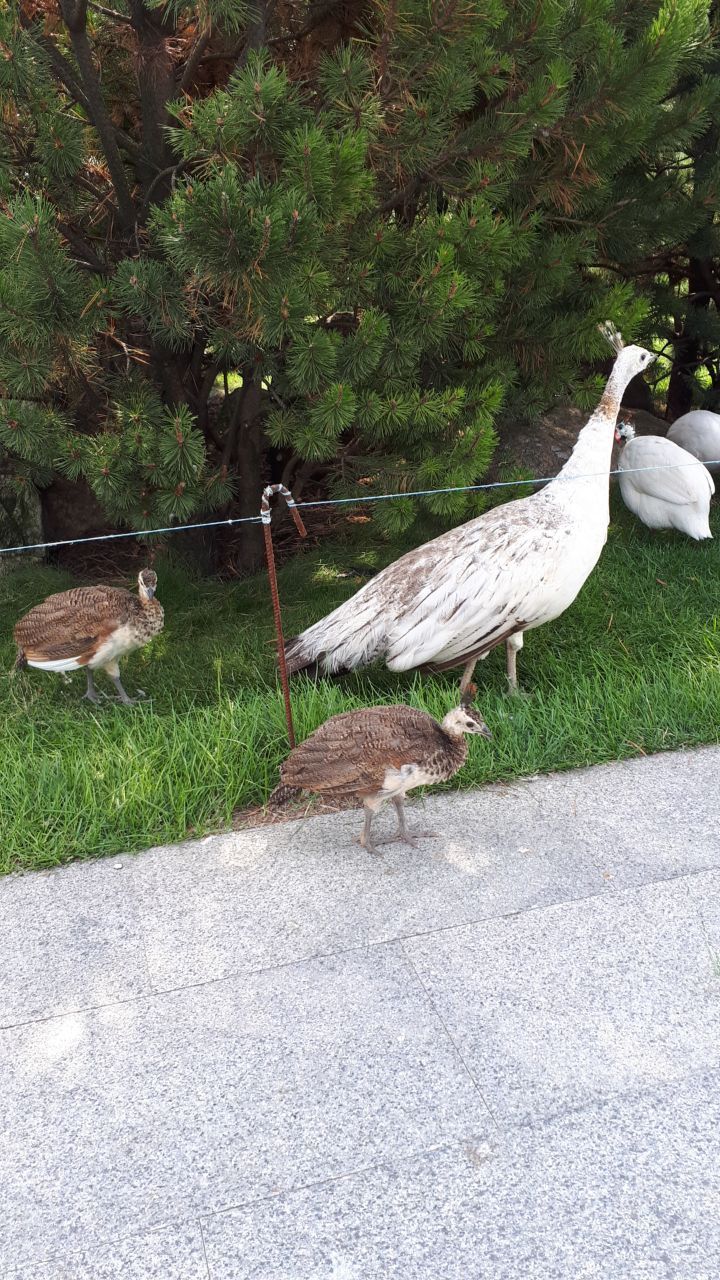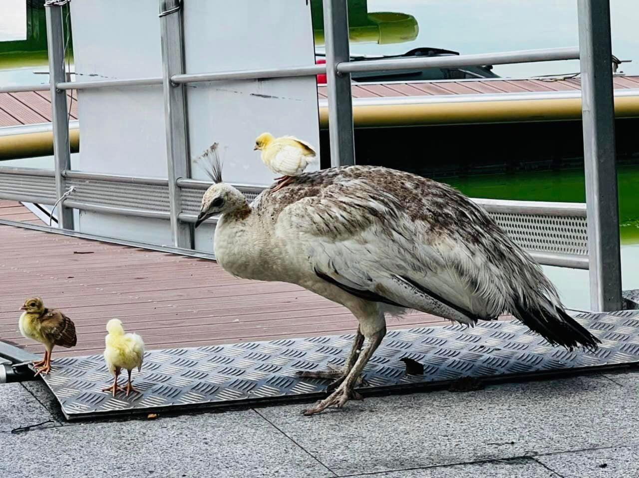 Десятки біленьких цесарчат гуляють на території яхт-клубу і вже украли серця відвідувачів. Хоча вони не настільки величні, як маленькі павленята, проте до цих малюків не менше уваги.