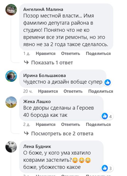 Не всі мешканці задоволені таким “розкішним” ямковим ремонтом дорожного покриття. У коментарях дехто обурюється, що через ігнорування владою проблем з дорогами доводиться йти на такі методи. Однак є ті, кому навпаки подобається така ідея та дизайн.