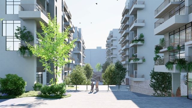 Третя та четверта секції будуть нижчими - на 9 поверхів. Нарешті, секції 5 та 6 – 11-поверхові, на їх перших поверхах плануються паркінг, торгові установи та дитячий клуб.