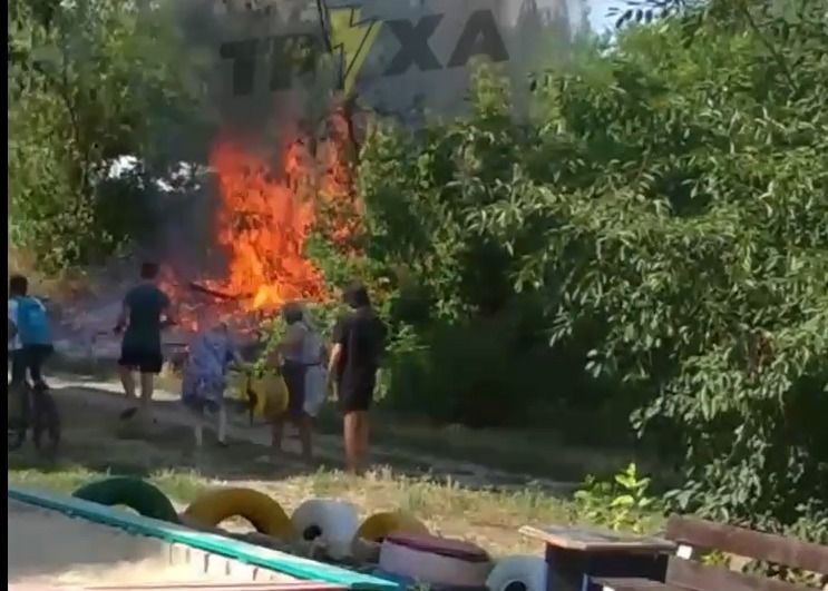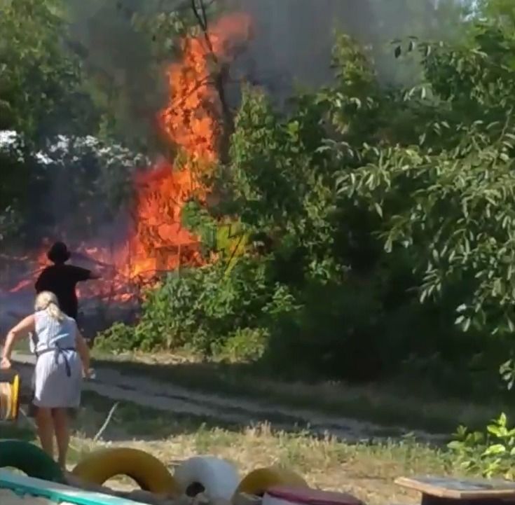 Місцеві мешканці намагаються самотужки загасити вогонь. Чи викликали на місце рятувальників - поки невідомо.