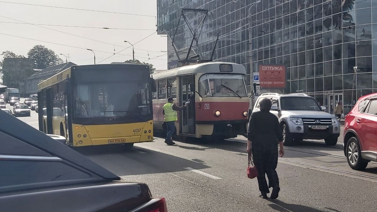 У Дніпрі на Степана Бандери серйозне ДТП: зіткнулися маршрутка, трамвай та легковик
