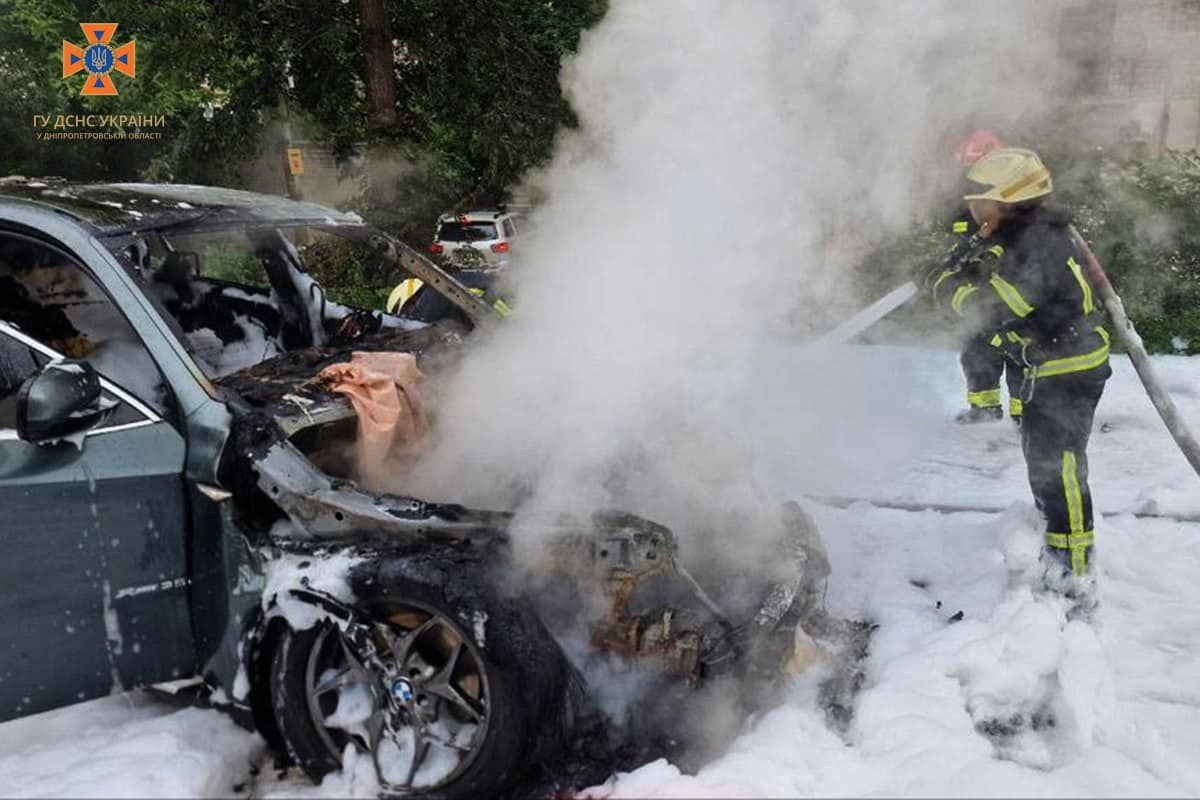 У Дніпрі на Троїцькій посеред дороги горів BMW: коментар ДСНС