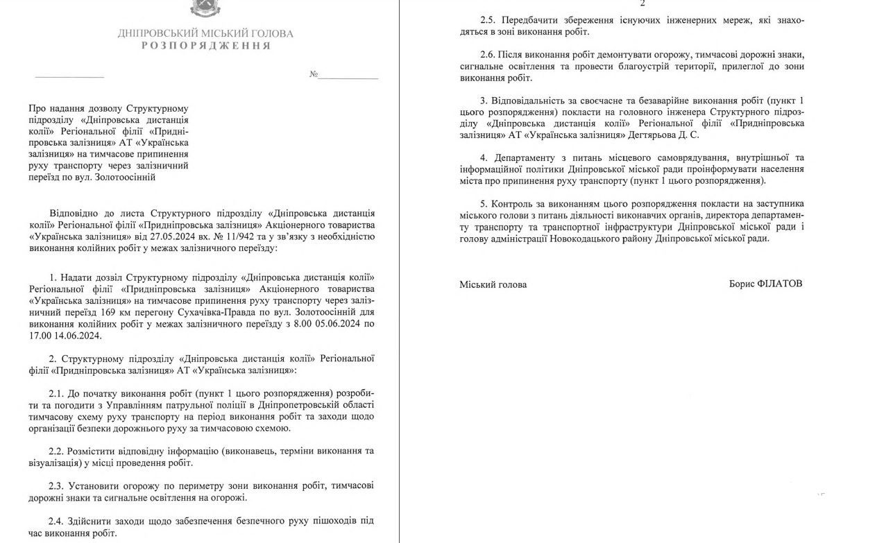 У Дніпрі збираються перекрити переїзд по вулиці Золотоосінній у зв'язку з ремонтом колій. Ймовірний термін перекриття – з 8:00 5 червня до 17:00 14 червня.