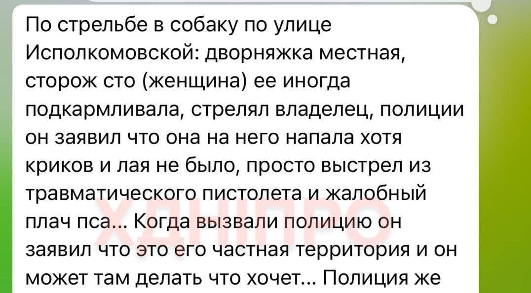У Дніпрі на Виконкомівській чоловік стріляв у безпритульного собаку: коментар поліції