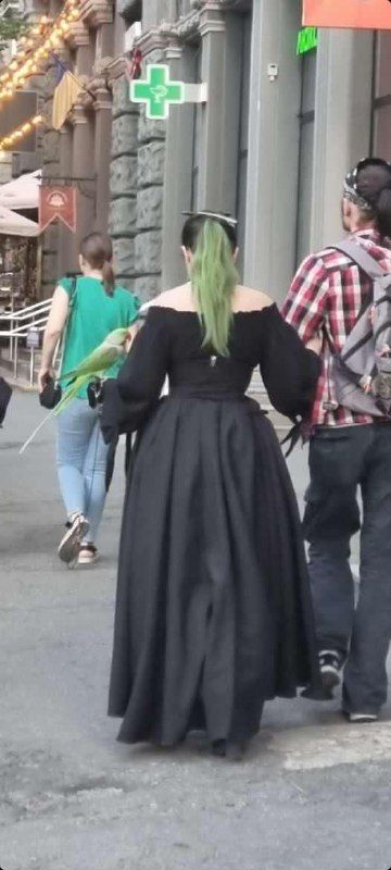 Дівчина просто прогулювалася проспектом, а на її руці сидів її вірний пернатий друг.