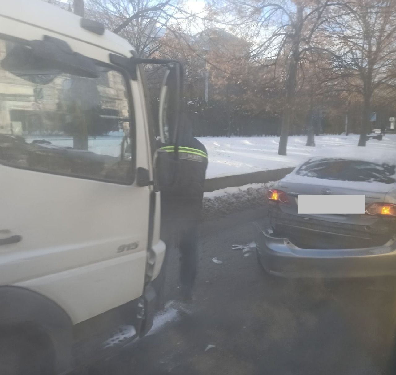 Сьогодні, 12 січня, на проспекті Дмитра Яворницького в районі будинку №42 сталася аварія - там зіткнулися вантажівка та Toyota.