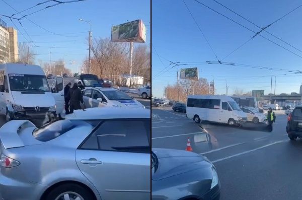 Сьогодні, 17 січня, у Дніпрі на з'їзді з Нового мосту сталася аварія - там зіткнулися маршрутка та легковик.