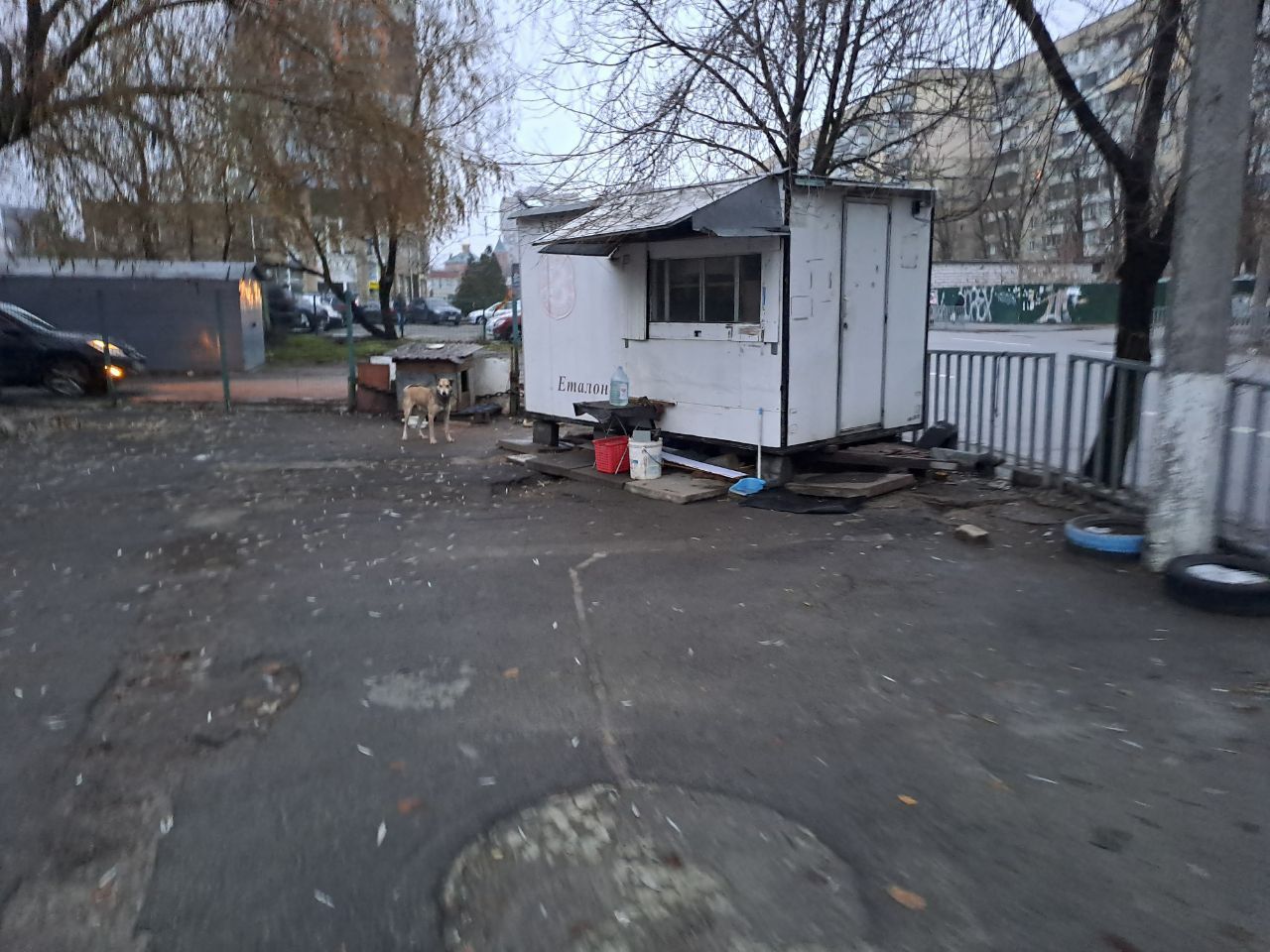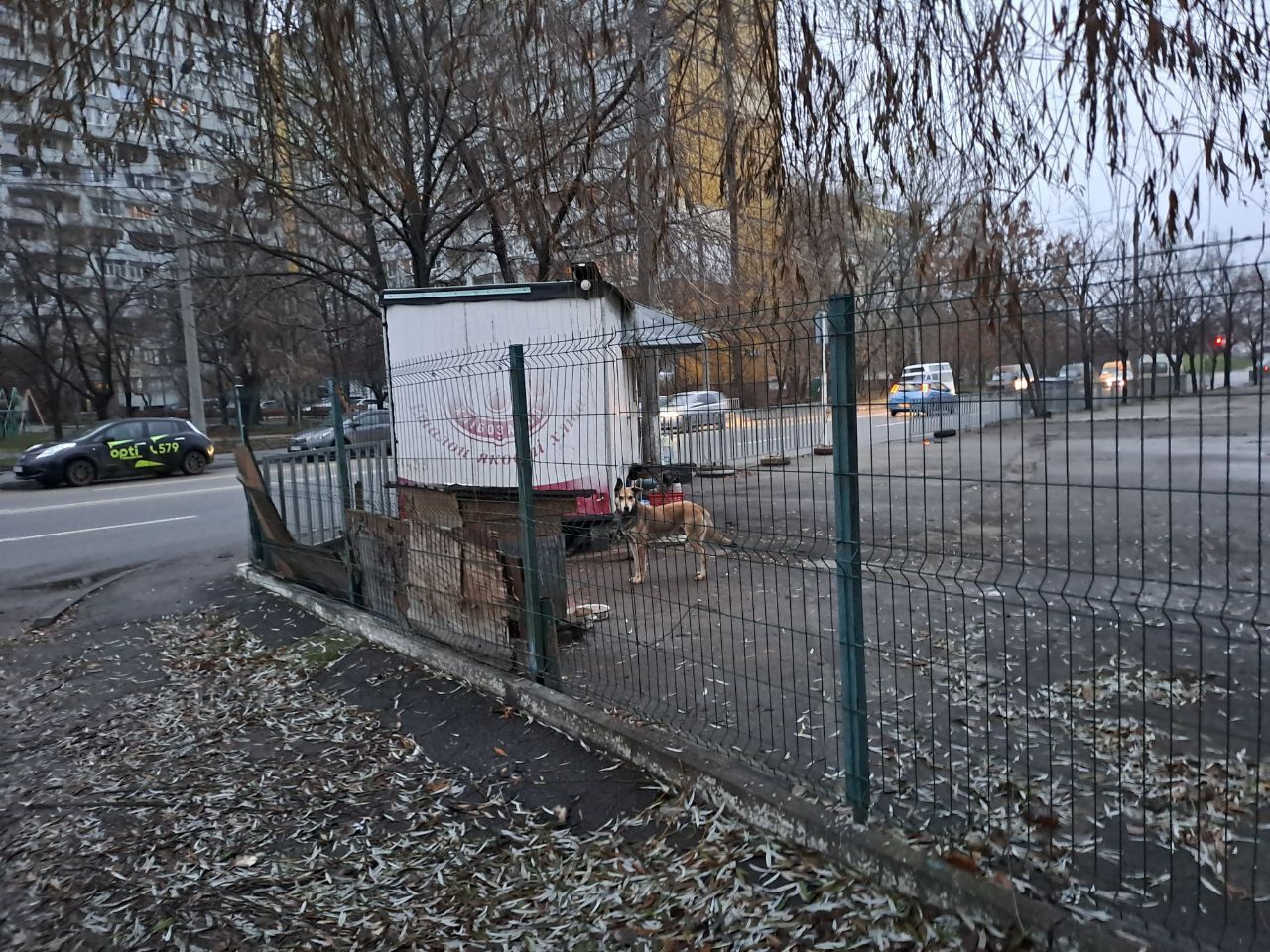 Як повідомляють дніпряни, раніше тут (напроти тупика тролейбуса) була платна парковка, але десь тиждень тому її зачинили. На цьому місці залишили молодого собаку, прив'язаного на півтораметровому ціпку.