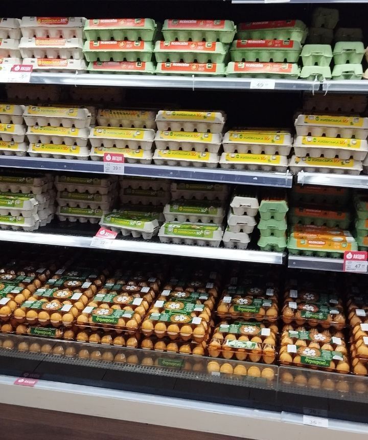 Традиційно вартість залежить від категорії та виробника. Більш преміальні яйця продають по 40 гривень, поштучно можна придбати і за 2,10, хоча лише минулого тижня їх продавали мінімум за 2,90 грн.
