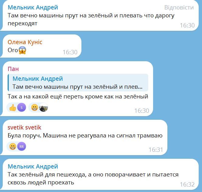 Дніпряни кажуть, що ця ділянка дороги досить проблемна, позаяк біля кінцевої зупинки трамвая також розташована стоянка для відвідувачів ТРЦ. Машини часто ігнорують пішоходів та їдуть на "зелене" якраз в той момент, коли люди мають переходити дорогу.