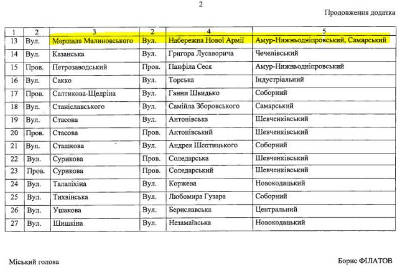 Раніше на сайті міськради публікували список вулиць-кандидаток на перейменування з новими назвами. Серед них була вулиця Маршала Малиновського, яка мала стати Набережною Нової Армії. Втім, в остаточному рішенні її немає.