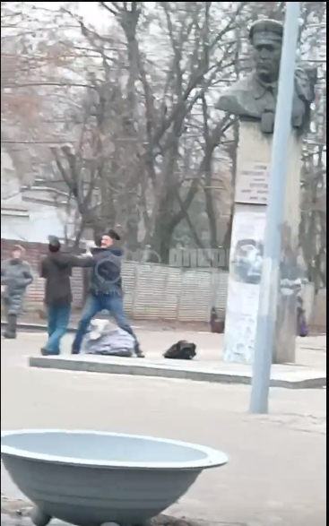 На кадрах можна побачити, що вандала намагався зупинити інший містянин, в якийсь момент між чоловіками навіть зав'язалася бійка.