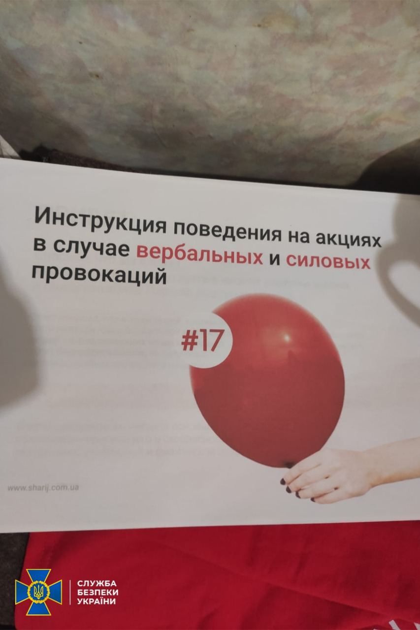 У нього вдома знайшли купу агітлистівок партії, «угоду про нерозголошення інформації», ворожі видання, фінансові звіти щодо витрат на антиукраїнську діяльність.
