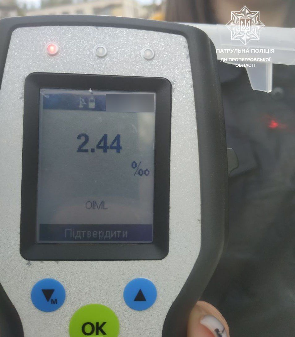 На щастя, жінка не постраждала, але під час спілкування з нею поліцейські помітили ознаки алкогольного сп’яніння. Винуватиця ДТП погодилась пройти огляд у встановленому законом порядку. Прилад Драгер показав вміст алкоголю в крові водійки — 2,44 проміле.