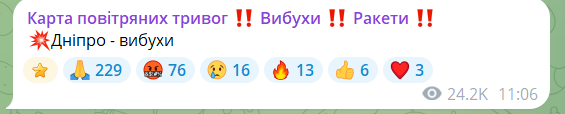 У Дніпрі під час повітряної тривоги пролунали вибухи