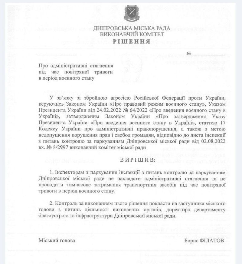 Така норма буде чинна до кінця воєнного стану в Україні. Зазначимо, що документ поки що не підписаний міським головою.
