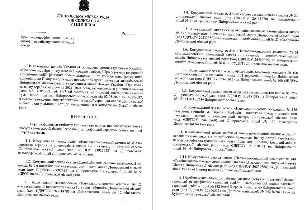 Ще 45 дніпровських шкіл стануть гімназіями, а деякі з них змінять назву. Повний список можна побачити в документі нижче або ТУТ. Зауважимо, що наразі це тільки проєкт, тож остаточне рішення приймуть на найближчій сесії міськради.