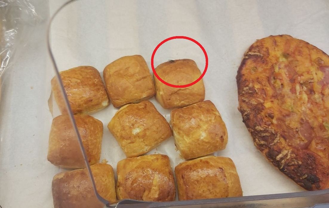На фото видно, що випічка не запакована, тому по ній вільно повзають комахи.