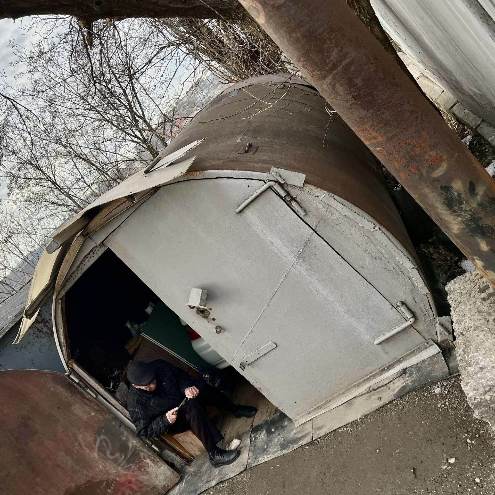 На фото, яке опублікував містянин, видно бочку, з якої спорудили гараж. Усередині стоїть автомобіль, а поруч порпається власник автівки. Скоріш за все для створення приміщення чоловік використав величезну пивну діжку.